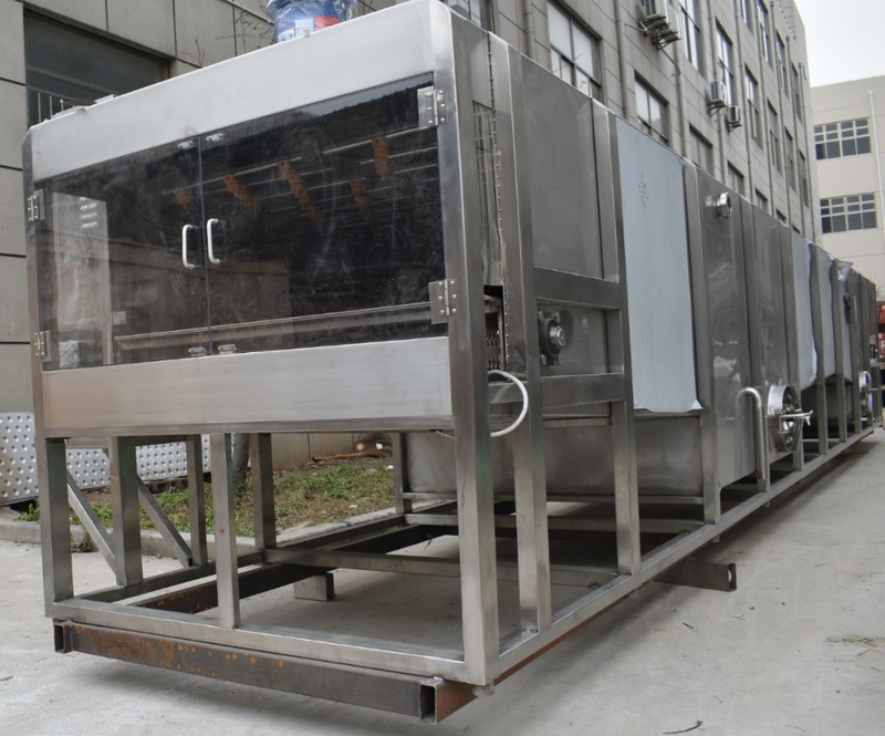 本機(jī)是消化吸收德國技術(shù)同類產(chǎn)品的基礎(chǔ)上,全新設(shè)計的,專門應(yīng)用于乳品,飲料,果凍的二次殺菌,整機(jī)符合包裝產(chǎn)品接觸部分全部采用SUS304不銹鋼制作、大鏈板。鏈輪也采用同種原料,具有抗酸堿,耐腐蝕的作用,水箱由蒸汽或電加熱,蒸汽用量由蒸汽電磁閥自動控制,熱水可充分利用,整機(jī)設(shè)計合理,制造精良,運做穩(wěn)定,美觀大方。