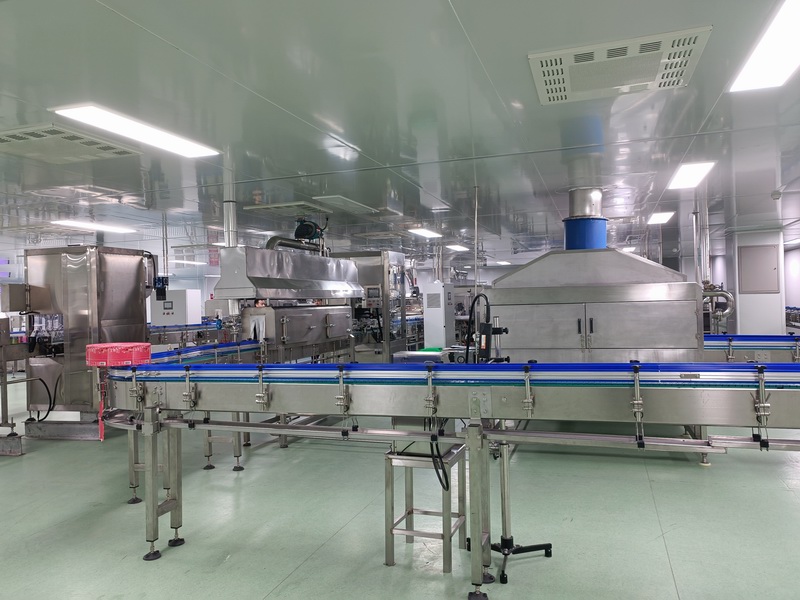 該生產(chǎn)線用于果汁飲料的生產(chǎn),可根據(jù)客戶要求及產(chǎn)量定制2000-36000瓶/每小時(shí)的生產(chǎn)線,整條生產(chǎn)線包括水果前處理系統(tǒng)、水處理系統(tǒng)、化糖調(diào)配系統(tǒng)、脫氣均質(zhì)殺菌系統(tǒng)、CIP清洗系統(tǒng)、吹瓶機(jī)系統(tǒng)、理瓶機(jī)系統(tǒng)、風(fēng)送、灌裝機(jī)、二次殺菌系統(tǒng)、套標(biāo)機(jī)、吹干機(jī)、噴碼機(jī)、膜包機(jī)、輸送、鍋爐等,自動(dòng)化程度可根據(jù)客戶要求配置,提供工藝流程及車間布局設(shè)計(jì),全程技術(shù)指導(dǎo)